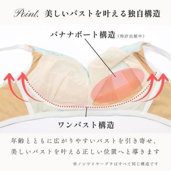 独自開発のバナナボート構造(特許出願中)をカップ内に装備。一人ひとりのバストのボリューム合わせて自在にカップの容量をアジャストするため、まるで自分のためにあつらえたようなフィット感が実現します。
