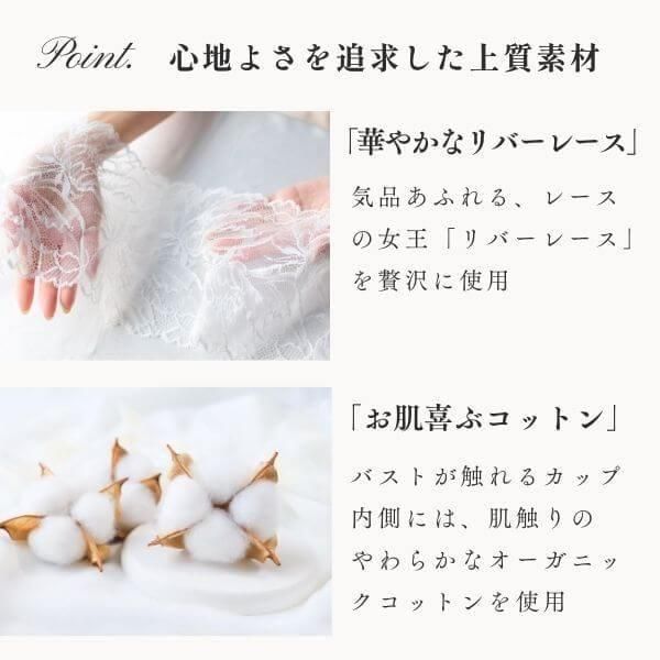 ブラのカップを覆うのは、世界中からの憧憬を集めるレースの女王・リバーレース。総リバーレースの贅沢なデザインで、繊細でエレガントな美しさ、世界が認める品質の高さが存分に堪能できます。