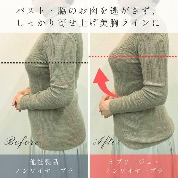 オブリージュは、快適さも補整力も美しさも妥協しません。40代のバストのために作られた新世代のノンワイヤーブラジャーをどうぞお試しください。