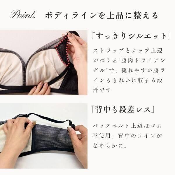 まるで着けていないような軽さでトップスに響きにくい上品なデザイン