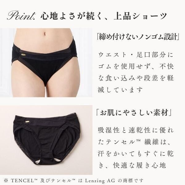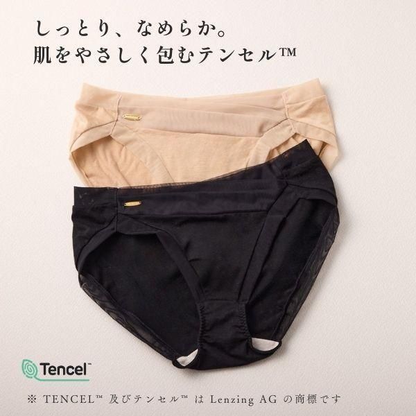 フロント・ヒップ全体に、非常に柔らかく、しっとりとした肌触り滑らかなテンセル™繊維 を使用。通気性もよく、肌への刺激が少なく季節を問わず着用いただけます。